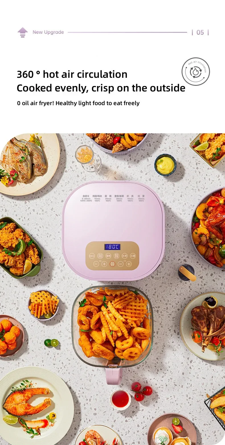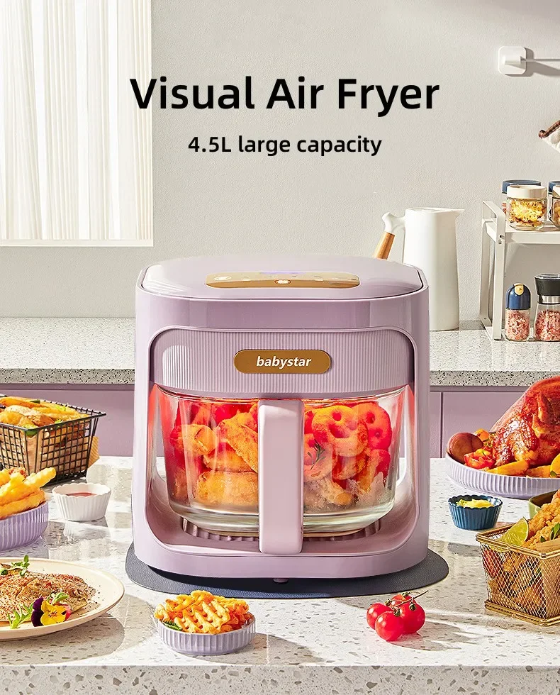Freidora de aire automática para el hogar, horno Visual de vidrio, microordenador multifunción, Control de pantalla táctil, sin aceite, 4,5 l